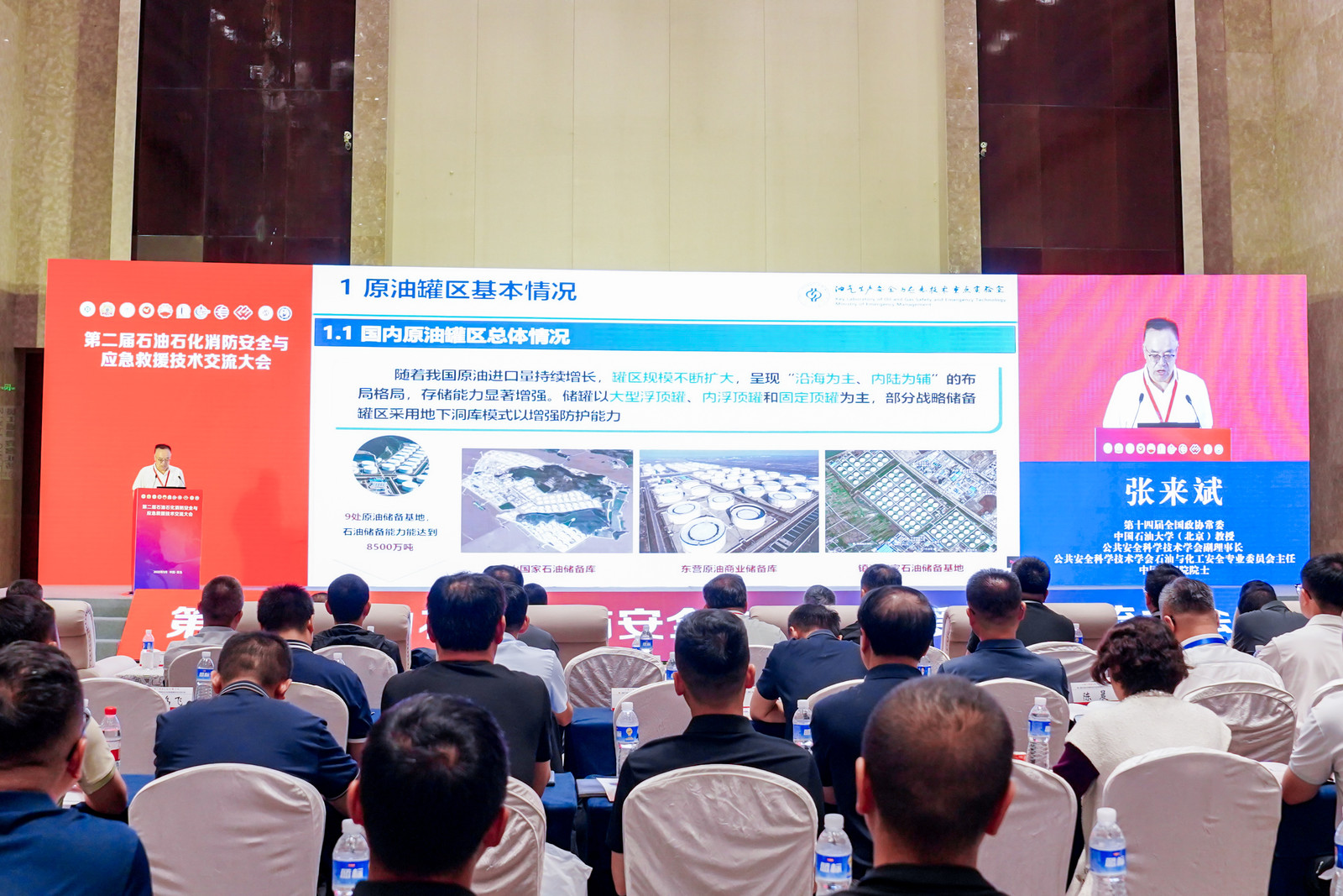 会议特别邀请第十四届全国政协常委、中国石油大学(北京)教授、公共安全科学技术学会理事长、公共安全科学技术学会石油与化工安全专业委员会主任、中国工程院张来斌院士作《原油罐区火灾风险防控技术及展望》专题报告。聚焦石油储存环节的重大风险,系统介绍了火灾监测预警、防火抑爆、应急处置等关键技术的研发进展与应用实践,并对未来技术发展趋势作出前瞻性展望,为提升罐区本质安全设计水平和风险防控能力指明了方向。