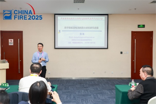 北京化工大学张胜教授做了题为《用于新能源电池的防火材料研究进展》的特邀报告,报告聚焦阻燃多功能微球在锂电池隔膜中的应用、阻燃多功能微球在凝胶电解质中的关键作用、电池热管理的相变材料及阻燃隔热电池外壳,系统展示了其在新能源电池防火领域取得的系列创新成果,为新能源电池用防火材料研究提供了新的技术路径与发展方向。
