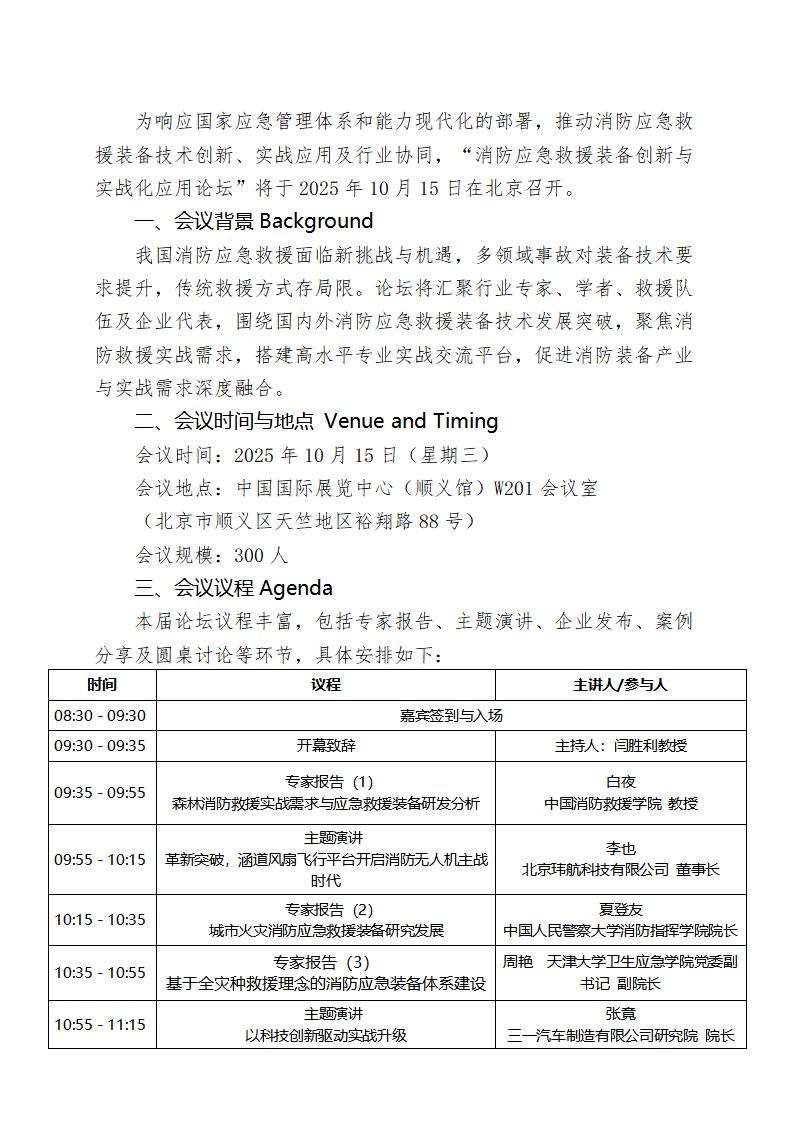 消防应急救援装备创新与实战化应用论坛即将在京举办